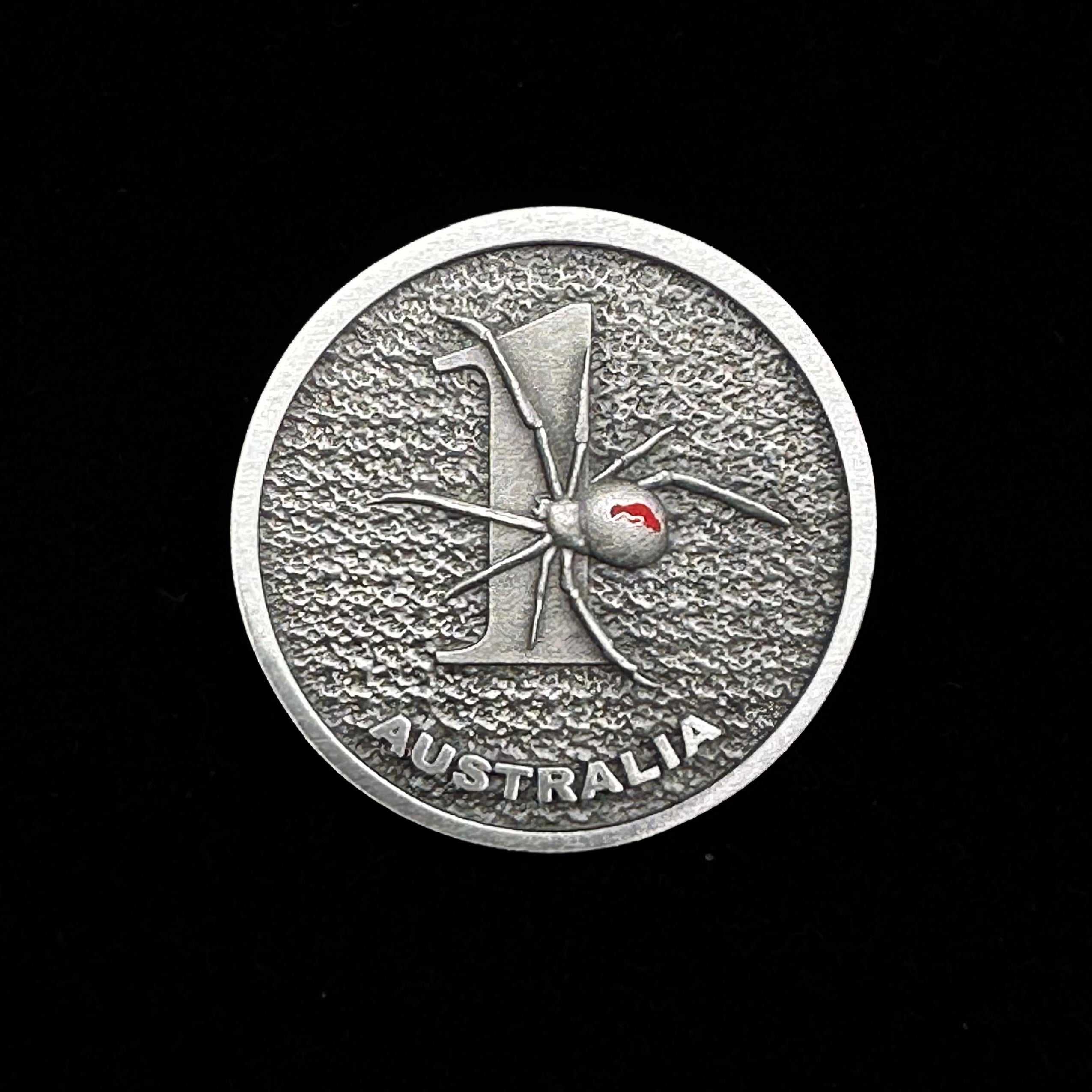 3D Pewter challenge coin embossed with the 1 SQN Redback Insignia, Incl. coloured redback stripe to the front and Regiment Winged Dagger to the reverse (44mm Dia).