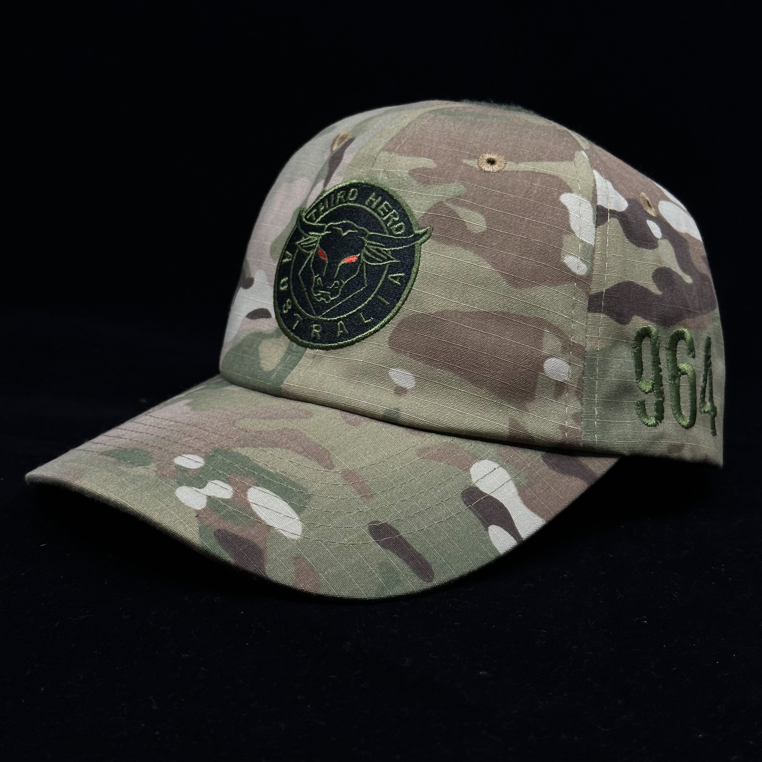 3 SQN Cap in Multicam & Black Multicam Ripstop and Tan Heavy Drill.