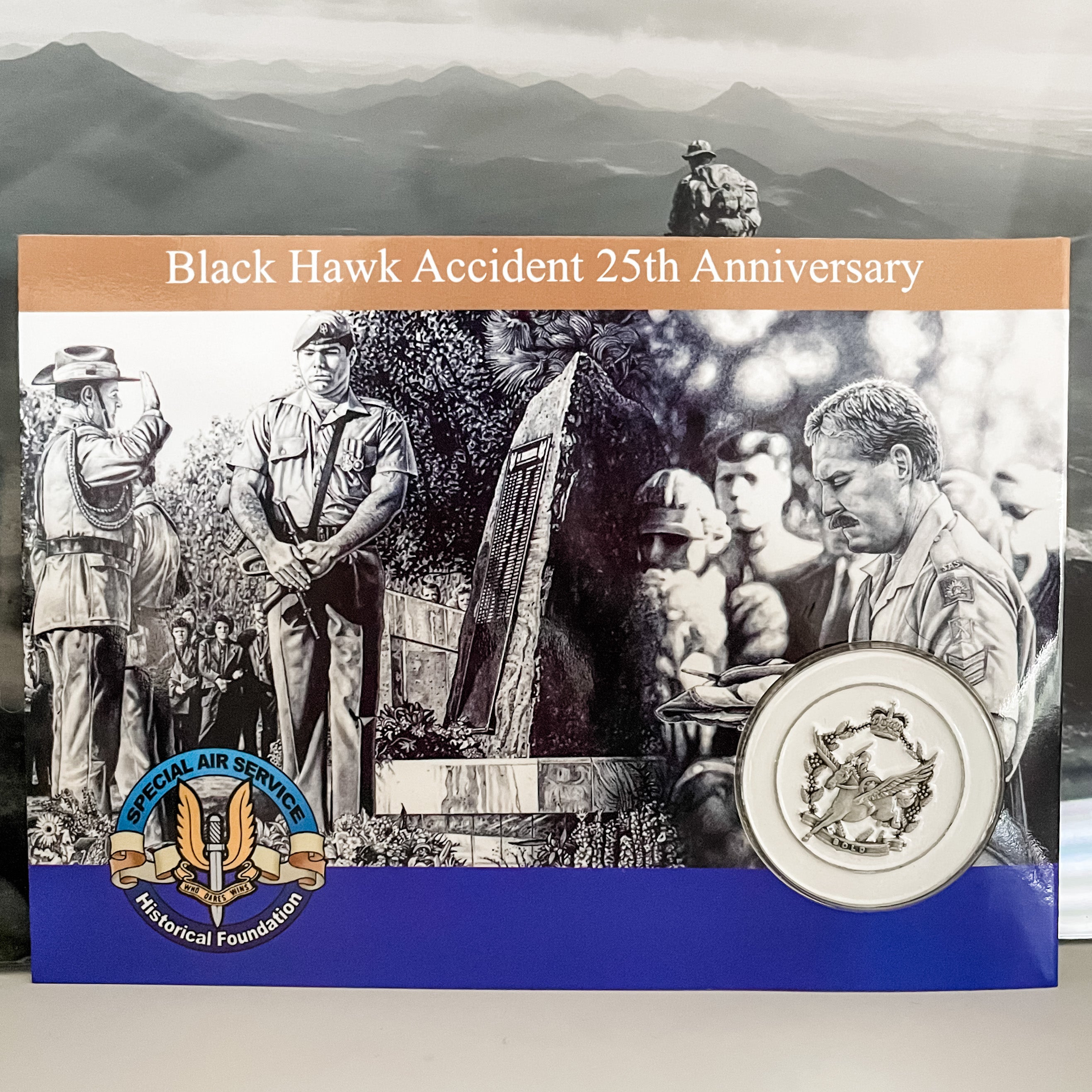 A limited release coin and penny card to commemorate the 25th Anniversary of the Blackhawk Accident in Townsville High Range Training Area in 1996.
