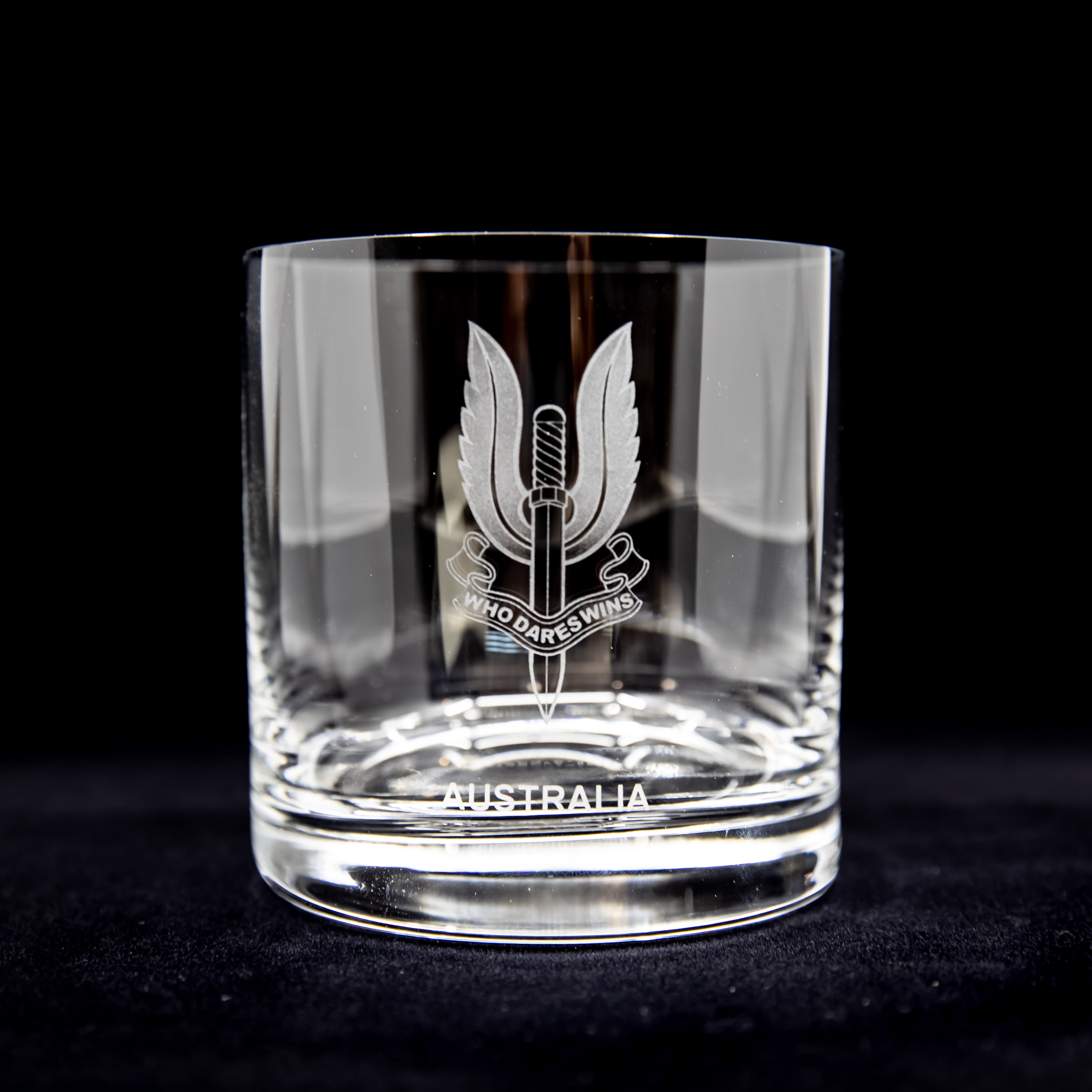 Locally etched high quality Regiment whisky glass.