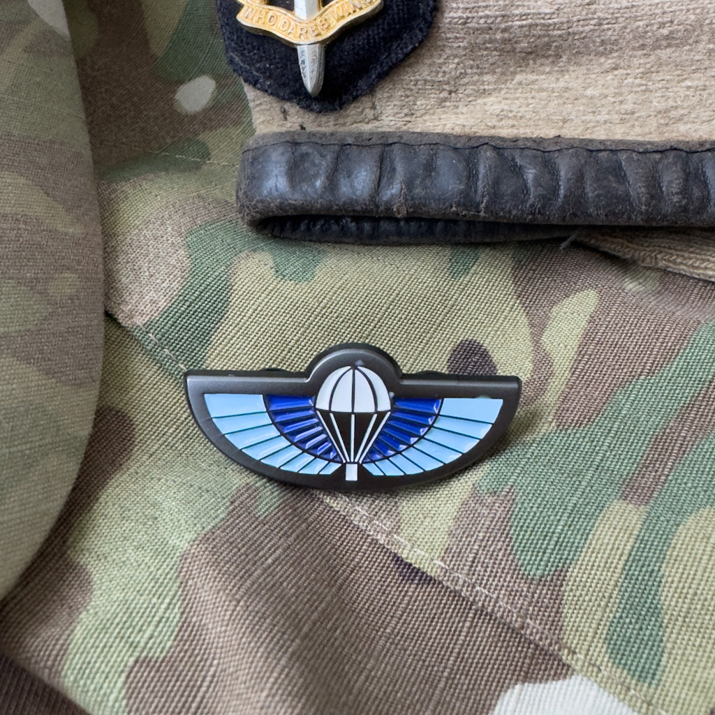 40mm Para wings Lapel Pin in plain pewter and colour enamel.