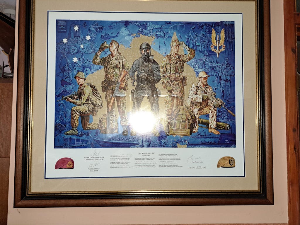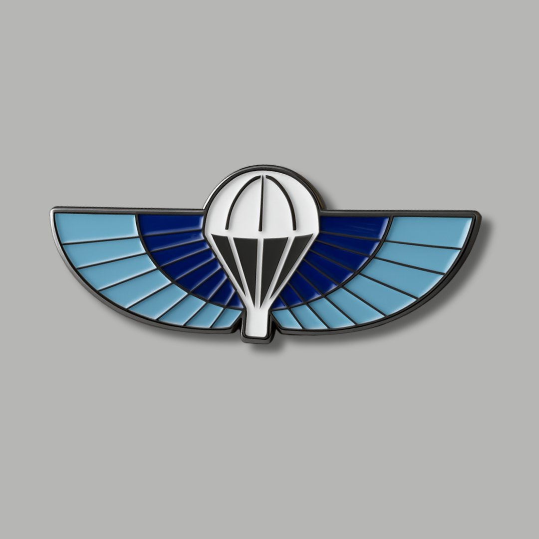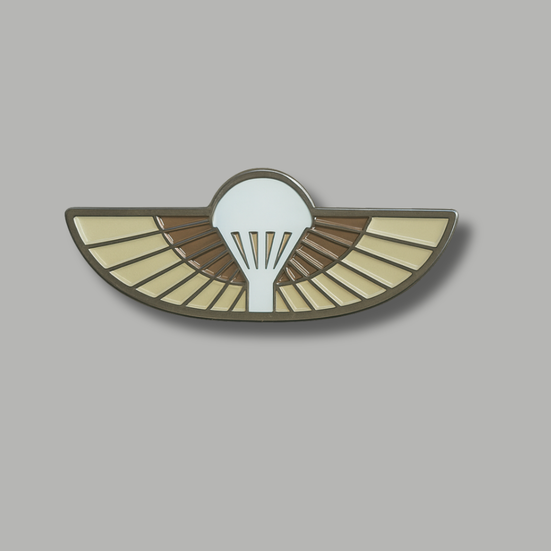 All Australian SASR qualified personnel are trained parachutists and the wings denoting this military speciality are those designed by Lieutenant John Steel 'Jock' Lewes a founding member of the British SAS in World War II.