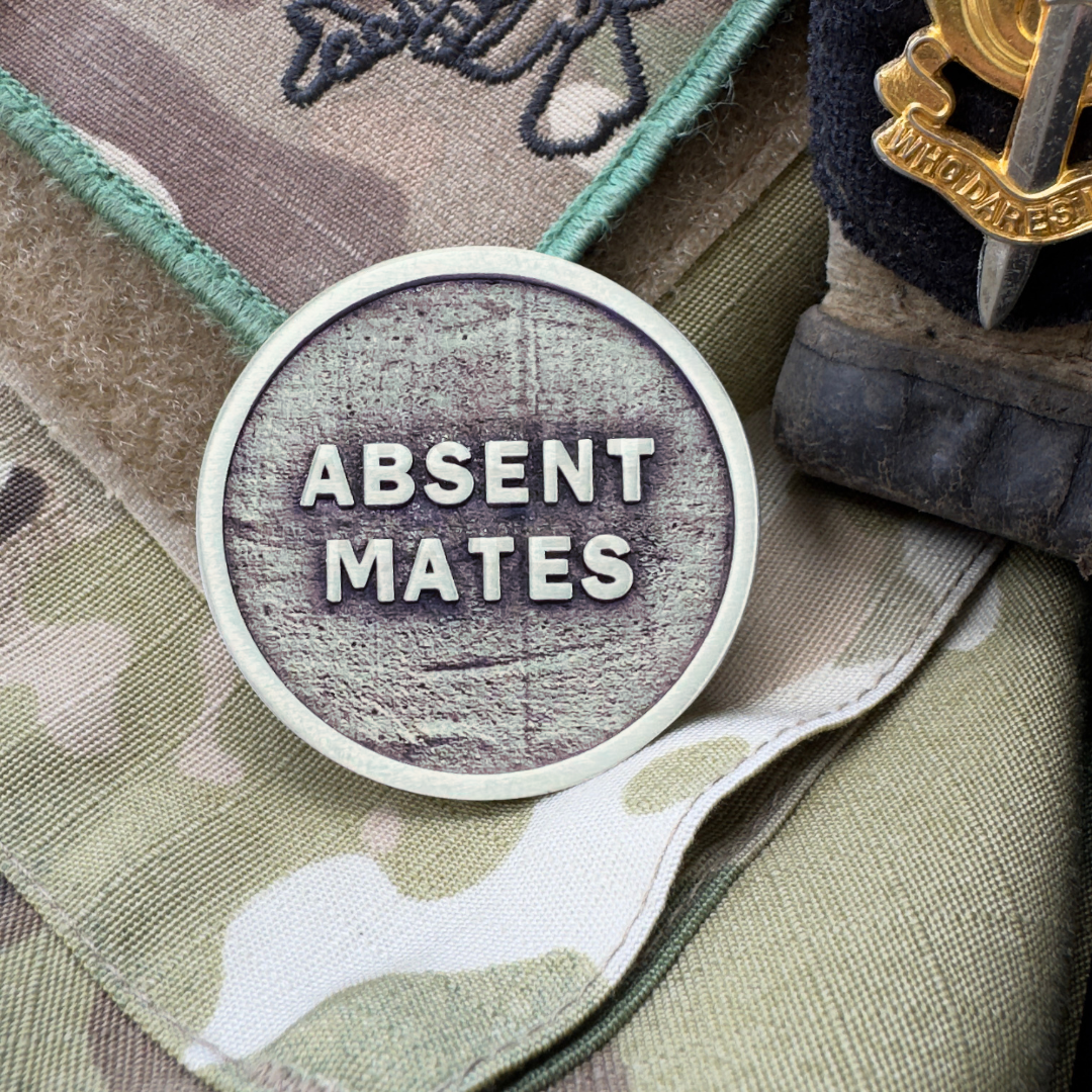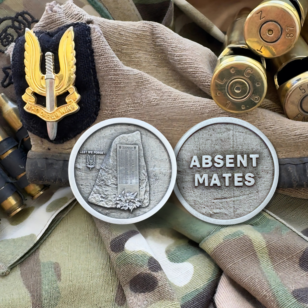 Introducing the Absent Mates Remembrance Coin, a distinguished collector's item honoring the celebrated mateship of members of the Special Air Service Regiment (SASR). Meticulously handcrafted from solid pewter using 100%% Australian materials, this coin is a token of tradition and serves as a poignant tribute to those who have made the ultimate sacrifice.