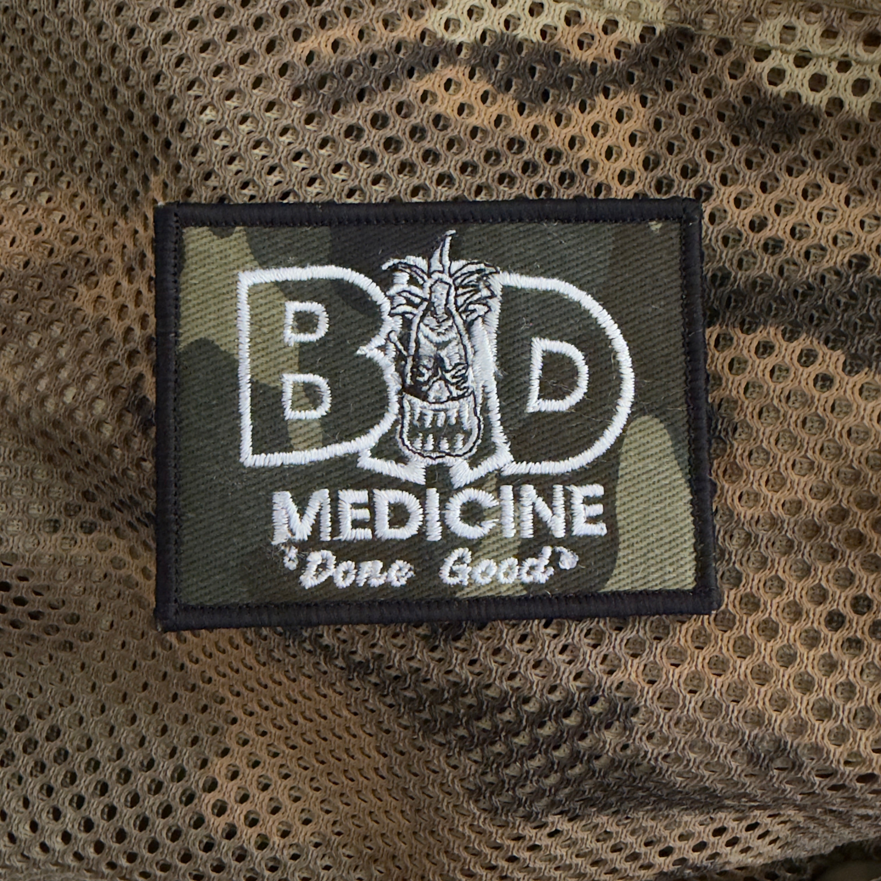 Originally worn by SASR and Commando medics in the 1990s, The Bad Medicine logo became a cult symbol within the Regiment. It captured the ingenuity and spirit of the medics who worked behind the scenes in the most dangerous conditions.
