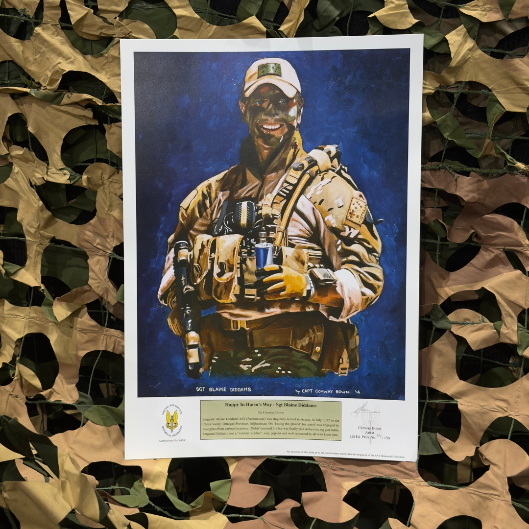 Sergeant Blaine Diddams MG (Posthumous) was tragically Killed in Action, in July 2012 in the Chora Valley, Oruzgan Province, Afghanistan. On 'hitting the ground' his patrol was engaged by insurgents from various locations. 'Didds' returned fire but was fatally shot in the ensuing gun battle.