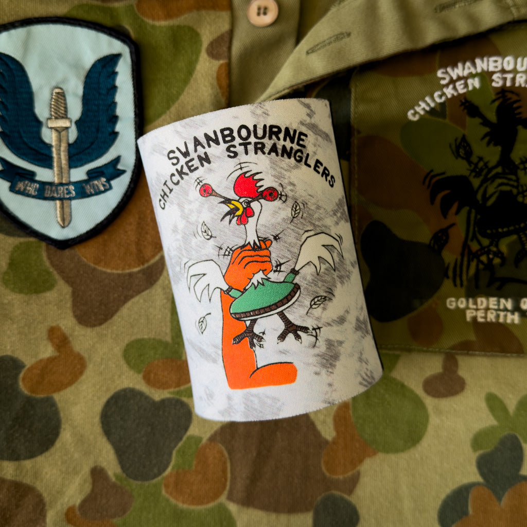 This limited-edition cooler carries the original Chicken Stranglers logo, hand-drawn by Frank Sykes’ son for the SASR Golden Oldies Rugby Team in the early ’90s.