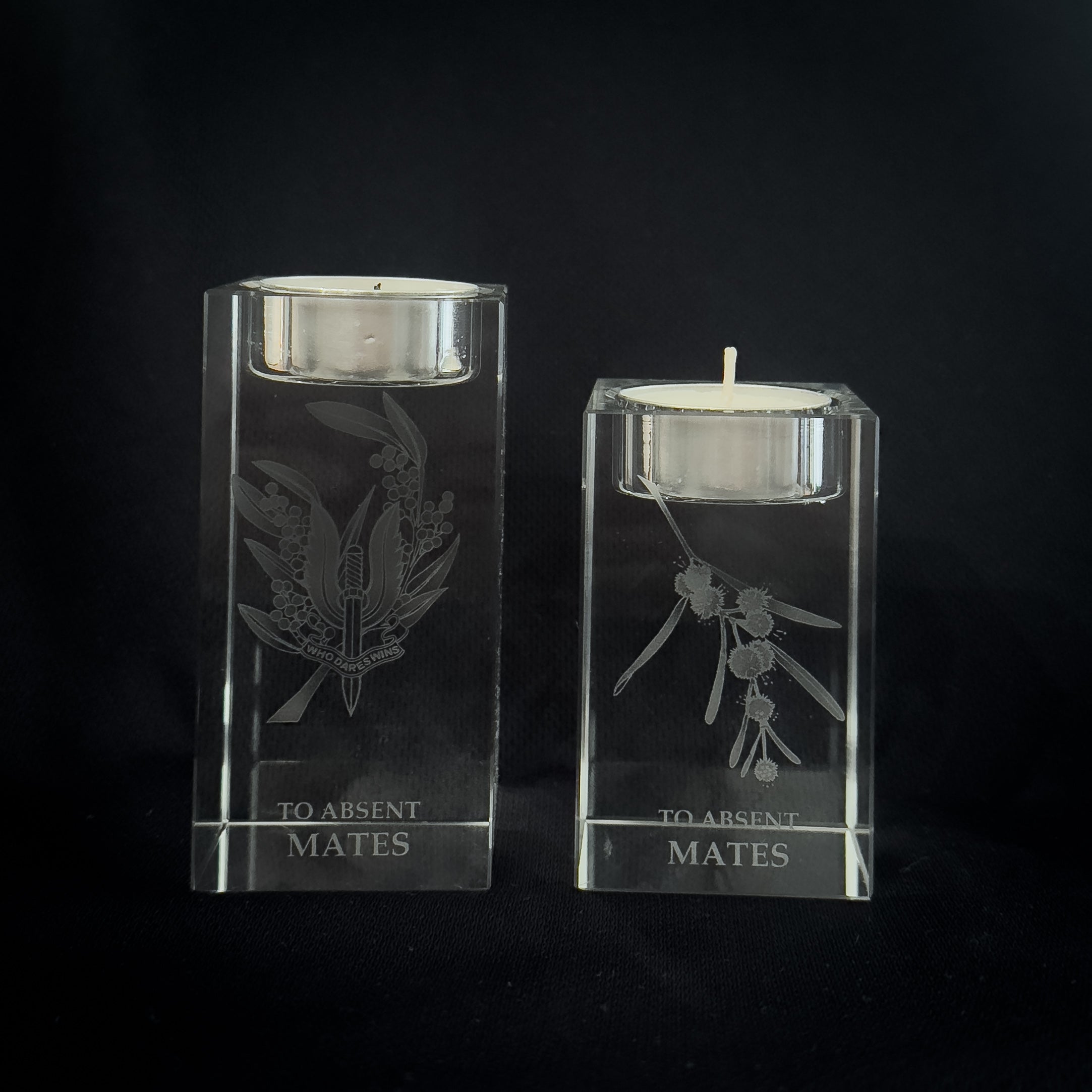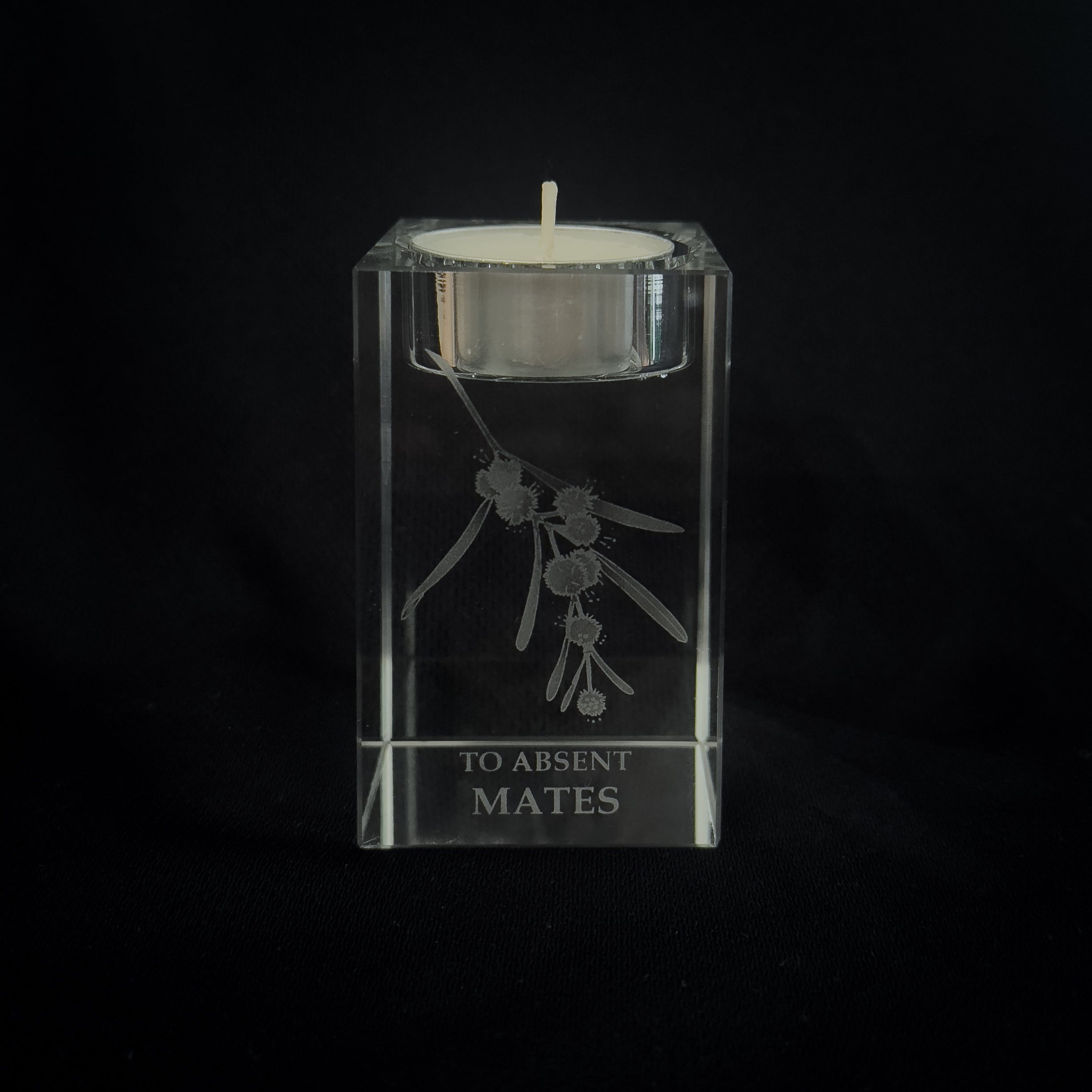 ‘To Absent Mates’ Etched Glass Candle Holders – ANZAC Day 2025 Release
