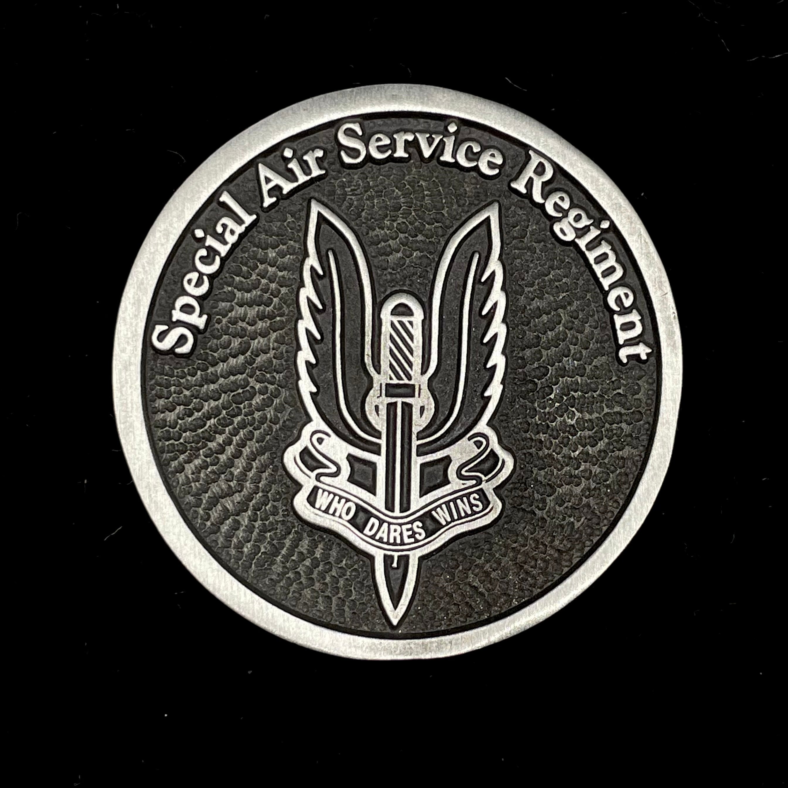 Pewter coin with Regimental Minion to front and Winged Dagger to rear.