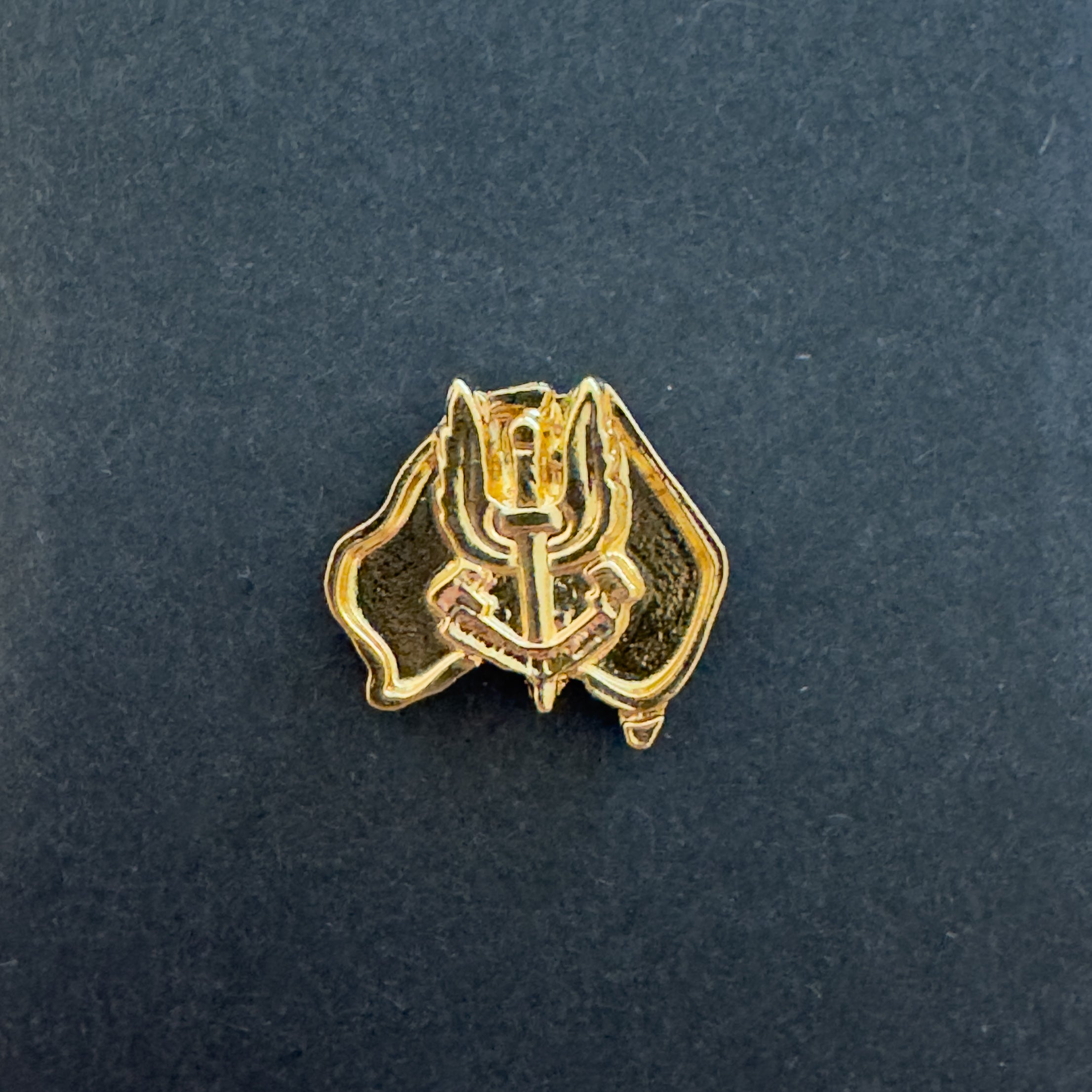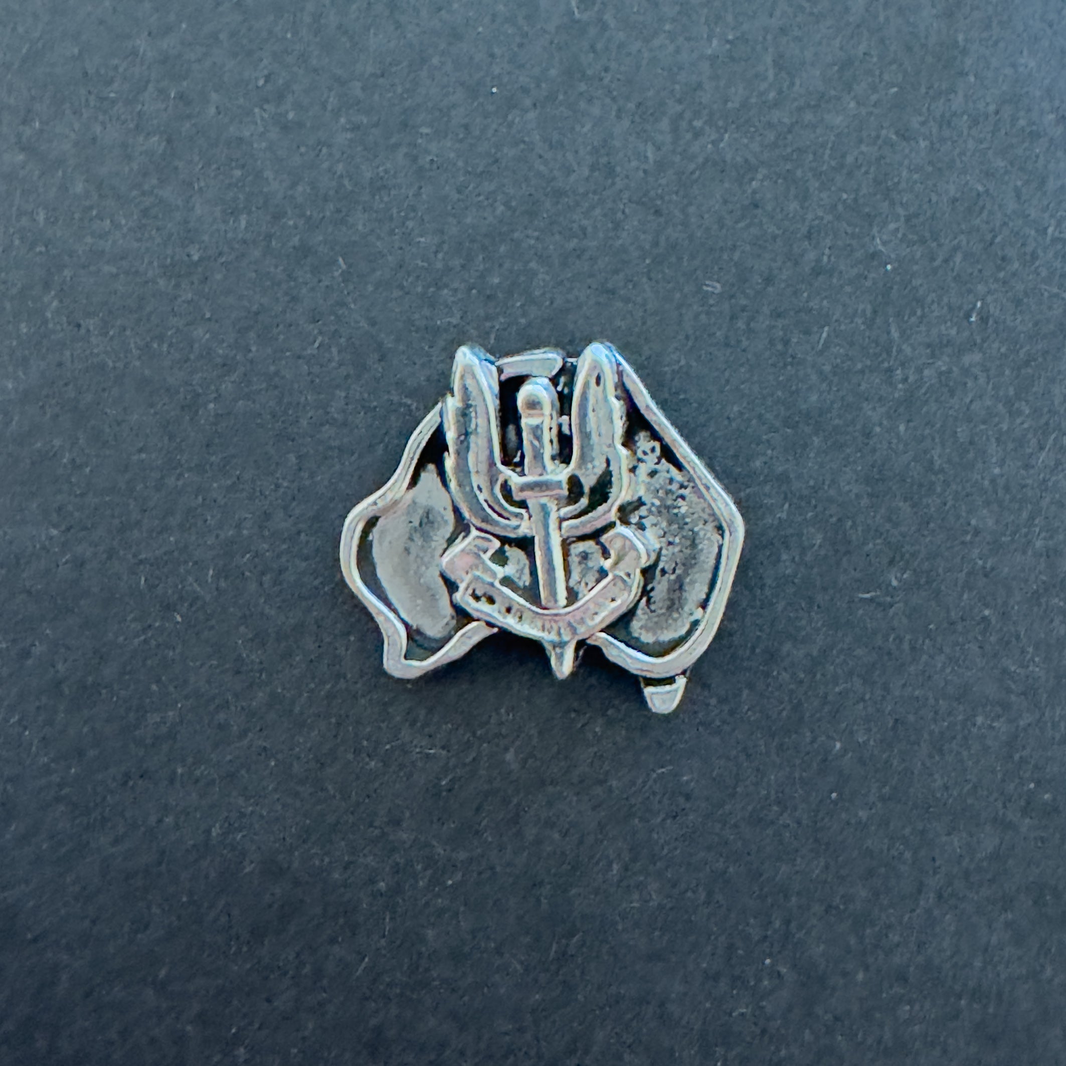 SASR Winged Dagger insignia, surrounded by the map of Australia. Solid Pewter and gold plated options available.