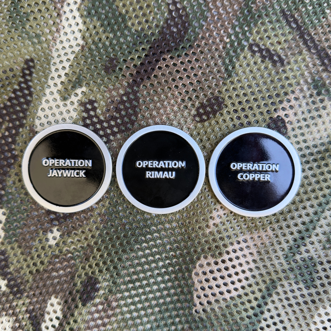 This enamel coin set displays the striking Z Special Unit Insignia on the front; and on the rear of each of the three coins is the names of the operations Jaywick, Rimau and Copper.